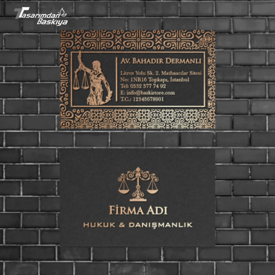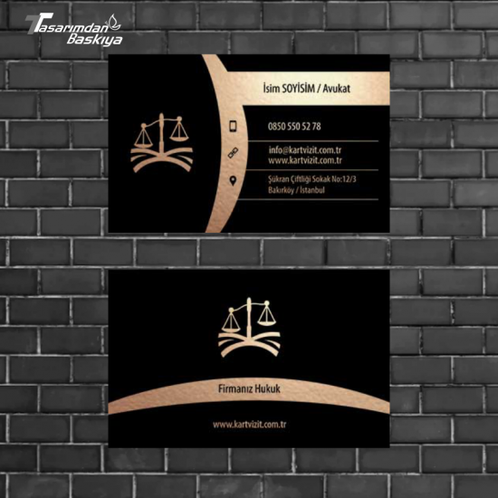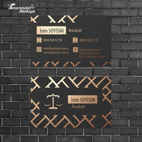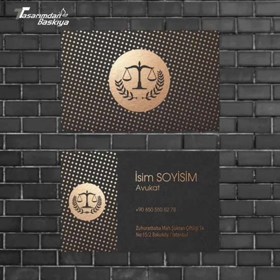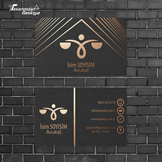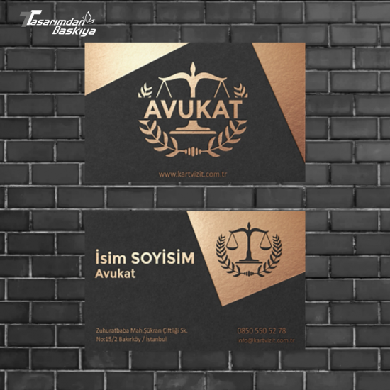 Avukat kartvizitleri, güven, ciddiyet ve kurumsallık algısı oluşturmalıdır. Bu nedenle sade tasarım, kaliteli kağıt ve premium baskı teknikleri ön plandadır.
